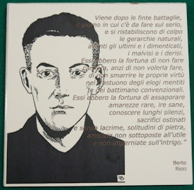 Il mio incontro con Berto Ricci avvenne proprio ritornando dalla prigionia, sui mercatini del libro usato, quando 40 anni fa si andava noi alla ricerca di libri che non si trovavano più nelle librerie. Libri che giustificassero la nostra rabbiosa fedeltà ad un regime vissuto in pantaloni corti. Ed è lì che mi incontrai con un libro intitolato "Avvisi" costituito da stringatissimi editoriali, con una prosa minuta, paragonata alla pittura del Rosai, semplice e grande.