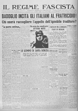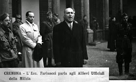 violentemente Badoglio, provocandene l’ira e le dimissioni da Capo di Stato Maggiore. Tornato in Patria fu allontanato dalla vita pubblica. Informato del possibile cambio di Governo già nel giugno del 1943 forse dallo stesso Grandi, decise di discuterne col Re, col Duce e financo con Hitler, affinché si trovasse una soluzione; tuttavia nessuno dei tre gli diede udienza. Il 25 luglio 1943 criticò l’ordine del giorno Grandi e presentò una sua mozione, votata solo da lui stesso. In essa si chiedeva al Re di attuare una netta “svolta filo-tedesca”, anche con un nuovo Presidente del Consiglio. La stessa sera si rifugia nell'ambasciata tedesca ed il giorno successivo si trasferisce a Monaco.Torna a Cremona il 22 Settembre 1943, tentando di riprendere il controllo del suo giornale. Mal sopportando l’ingerenza tedesca, si ribella apertamente a questi; viene perciò allontanato e privato di ogni carica e durante la R.S.I. è completamente estromesso dalla vita politica. Insediatosi a Milano presso la Marchesa Medici del Vascello, forse l’unica donna di rilievo della sua vita, il 27 aprile 1945 decide di allontanarsi verso la Valtellina. Episodio curioso narrato da testimoni oculari, Farinacci chiede all’autista di sedersi dietro e di far guidare lui, benché privo di una mano; a Beverate, frazione di Brivio, trovatosi innanzi a un posto di blocco partigiano, decide di sfondarlo a tutta velocità, ma l'auto viene fermata da una raffica di mitra: l’autista muore sul colpo, la Marchesa Medici viene ferita mortalmente (morirà dieci giorni dopo in ospedale), Farinacci, ironia della sorte, si salva miracolosamente. Il mattino del giorno dopo, 28 aprile 1945, dopo aver passato la notte in una villa di Merate, subisce un processo sommario partigiano e viene fucilato barbaramente presso il municipio di Vimercate, nel Milanese.
